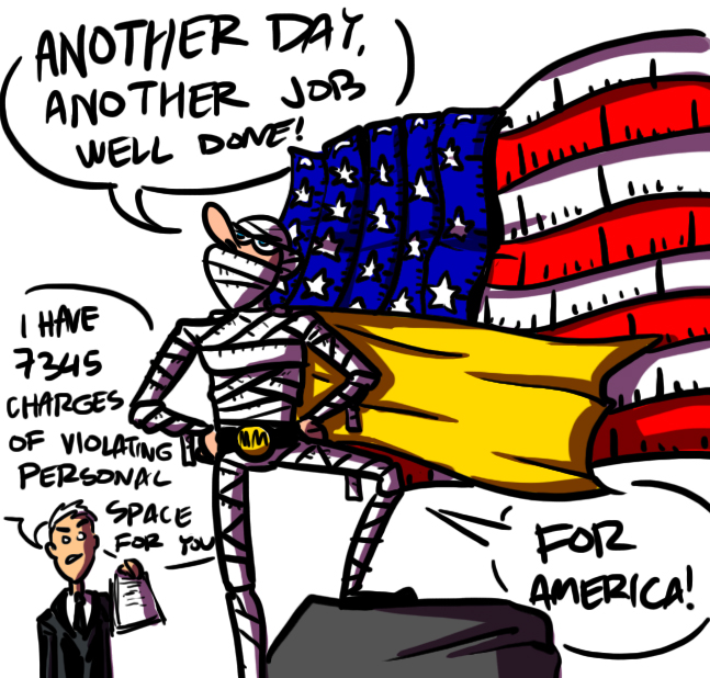 A hero no one asked for, but he is here anyway, to measure muscular women and harras criminals.
