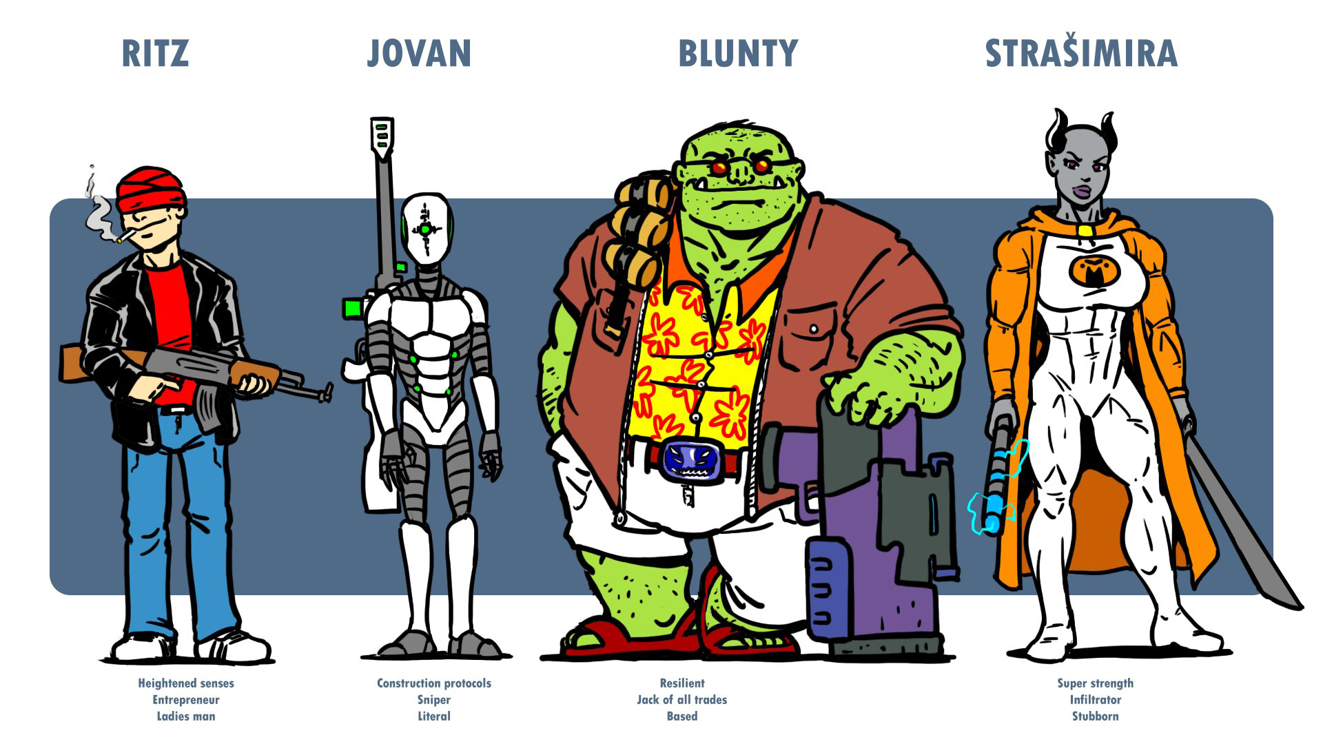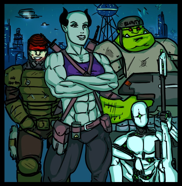 Ritz and his companions, Blunty, Jovan and StraĊĦimira, are a gang of space mercenaries and my main characters, being around for years now.